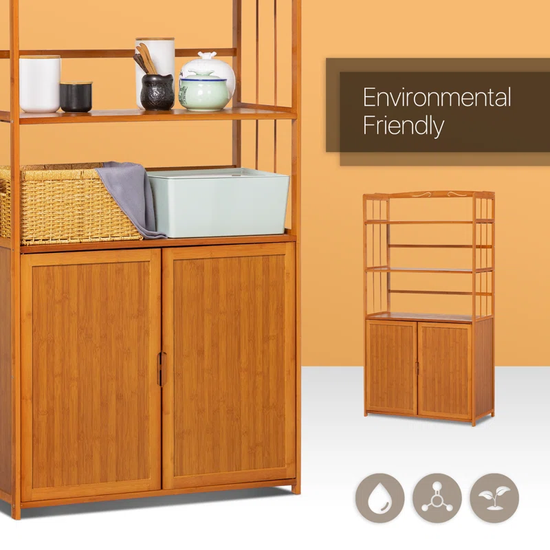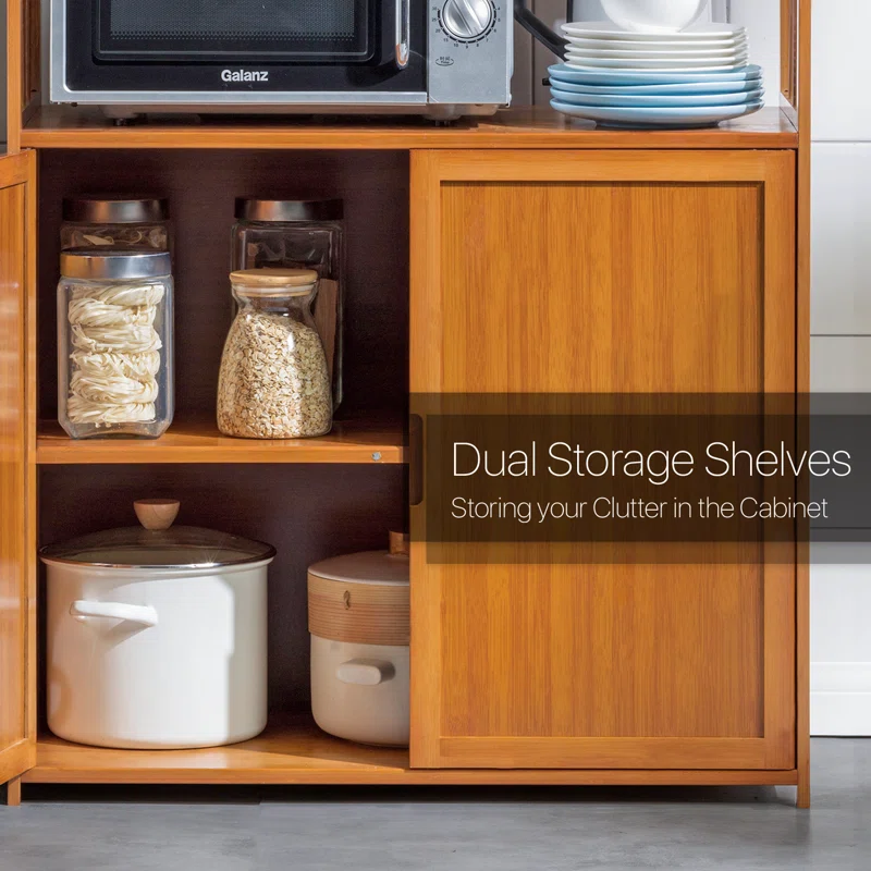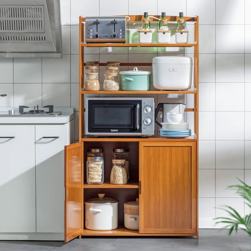 - Equipped with 1 storage cabinet with doors, and 3 open storage shelves provide massive space for storage and ensure that there is enough space to put utensils, this kitchen storage rack can accommodate your microwave oven, coffee maker, or other kitchen appliances.