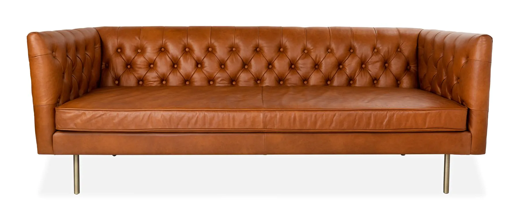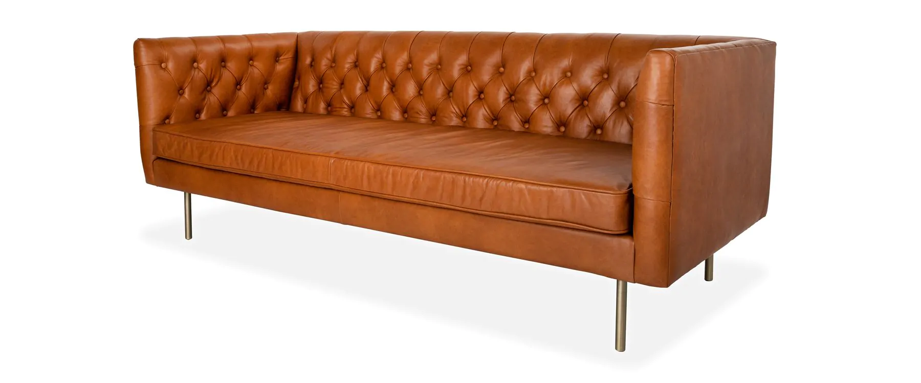 With hints of a Chesterfield design, the Eastside offers relaxed and contemporary vibes with a high-design finish. Beautifully wrapped in a top grain, buttery aniline leather, the Eastside is a piece that ages beautifully and looks incredible paired with any style of décor. Clean modern lines, buttoned backs and arms, and brass effect metal legs give the Eastside an effortlessly cool aesthetic, while a foam bench seat and sprung base supported by a sturdy hardwood and softwood frame offer long lasting comfort and support