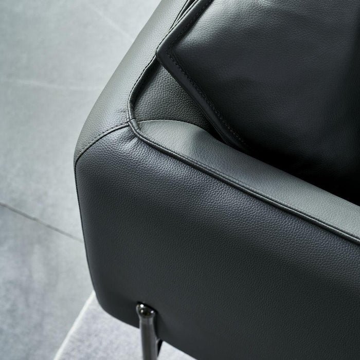 The bull leather sofa is finished with zinc-titanium alloy electroplated black titanium feet. This modern leather sofa is built to stand the test of time, a testament to durability and quality, promising years of enjoyment.