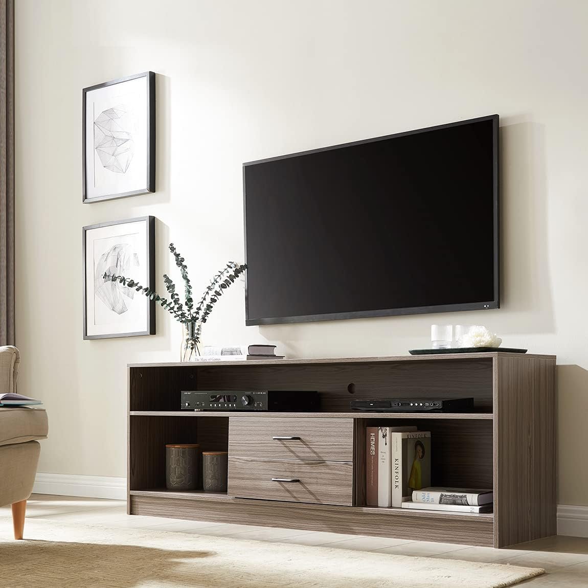 This modern TV stand can provide a stylish entertainment center for your living room with multi-region storage, orderly, organize commonly used books and publications, so as not to cause confusion.