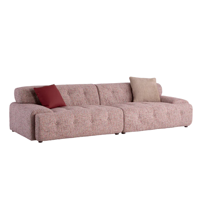 Introducing our comfortable and cozy sofa, upholstered with premium quality hawthorn pink cotton and linen blend fabric. Filled with high-quality down and high-density sponge, this sofa offers exceptional comfort. The metal legs add a modern and stylish touch to the design while providing a sturdy foundation. Whether you’re reading a book or watching your favorite TV show, this sofa is perfect for relaxation. Upgrade your home decor with this comfortable and stylish piece.