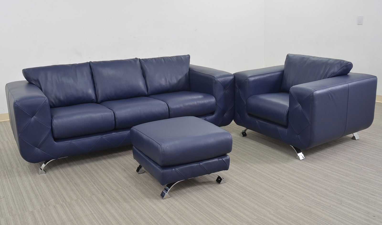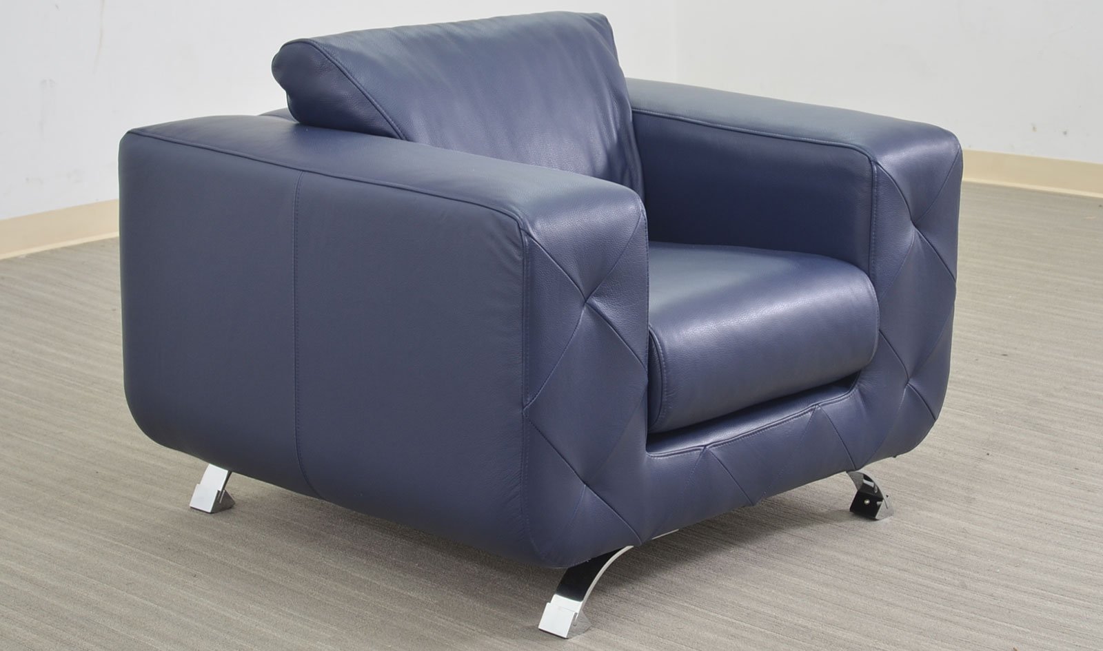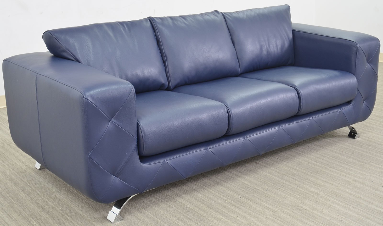 A modern style sofa with chrome legs